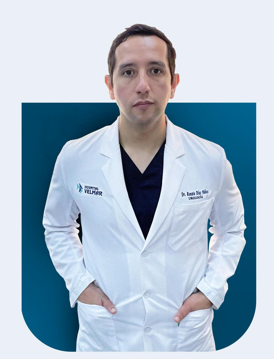 El Dr. J. Renato Díaz Núñez es urólogo especialista en laparoscopía y cirugía robótica, con formación en la Universidad del Ejército y Fuerza Aérea.Cuenta con certificación por el Consejo Nacional Mexicano de Urología A.C., lo que garantiza atención médica actualizada, ética y respaldada por estándares nacionales.Su práctica se enfoca en ofrecer tratamientos efectivos, mínimamente invasivos y personalizados para cada paciente.